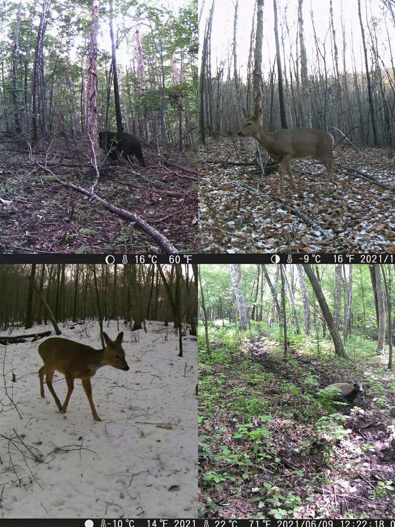 近日,帽儿山教学区在野生动物监测方面获得了重要发现。工作人员在定期收集尖砬沟施业区内红外相机影像资料时,相继发现黑熊(Ursus thibetanu)、马鹿(Cervus elaphus)、狍(Capreolus pygargus bedfordi)、野猪(Sus scrofa)、獾(Meles meles)、黄鼬(Mustela sibirica)等多种野生动物活动画面。此次发现是帽儿山教学区首次以影像形式记录到国家重点保护动物(II级)黑熊和马鹿。