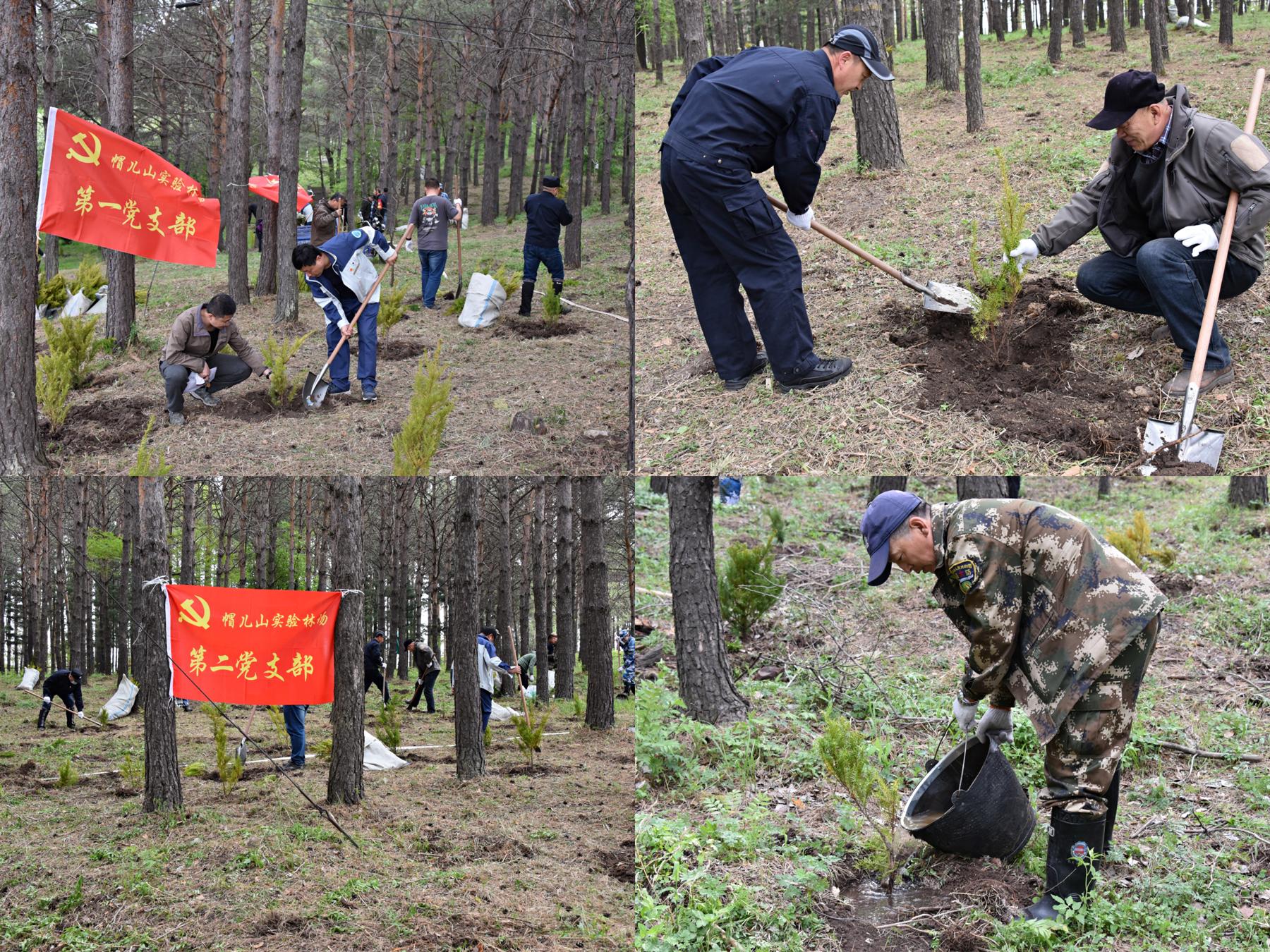 此次主题党日活动地点为林场后山,活动内容为栽植红豆杉。活动中,在林场第一、第二党支部的组织下,职工分别组成了浇水组、运苗组、植树组和垃圾清运组,按照林场技术人员讲解的栽植方法,大家井然有序、分工合作地进行植树活动;此次造林为林冠下造林,在樟子松、红松林间栽植,造林地杂草丛生、树根缠绕、土质较硬,挖树坑、运树苗都非常吃力,但大家挥锹铲土、扶直苗木、培实新土、提桶浇水,每一道工序都细致认真、一丝不苟。经过1天辛苦的劳动,大家共栽植东北红豆杉树苗2000余株。