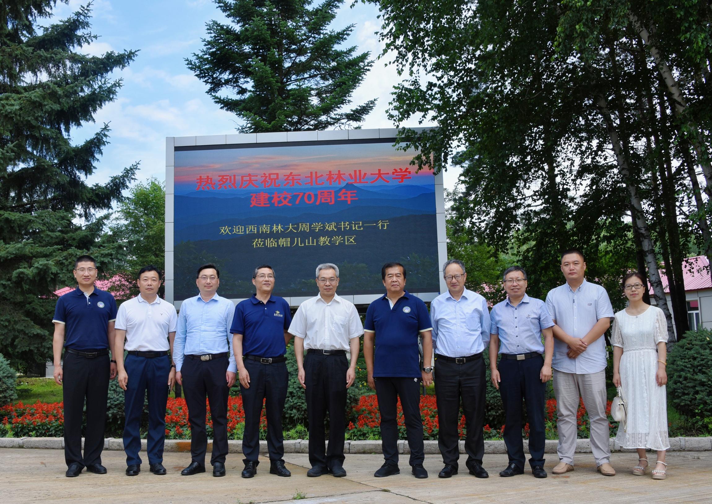 2022年7月9日,西南林业大学党委书记周学斌、副校长杜官本一行莅临帽儿山教学区考察交流。教学区(实验林场)场长李永才、副场长李俊涛等与其进行了深入交流。