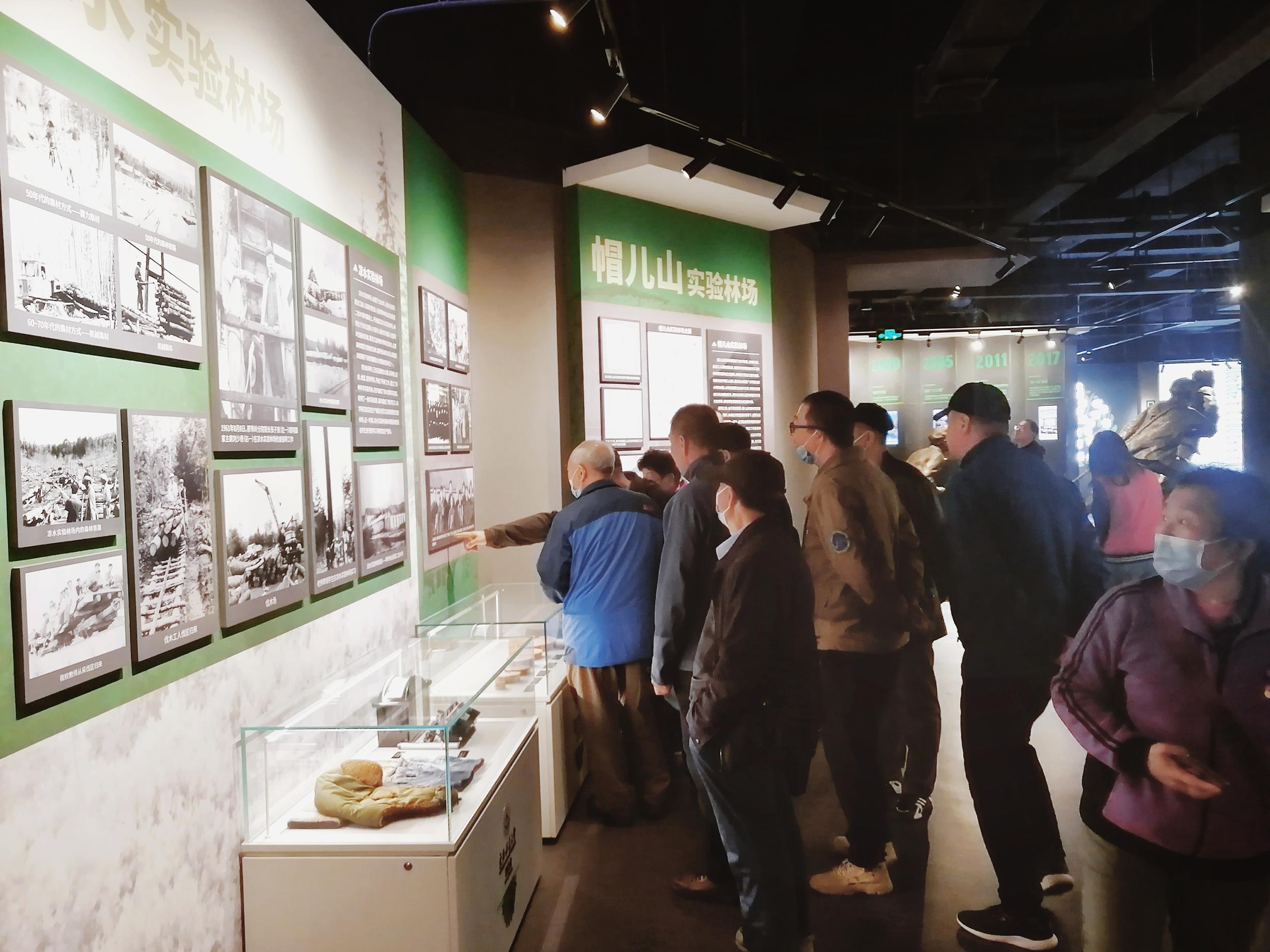 在校史馆讲解员的引导下,林场职工依次参观了“建校伊始 创业维艰”“曲折前进 蓄势待发”“抢抓机遇 跨越发展”“锐意进取 深化内涵”“改革创新 建设一流”五个主展区,一起重温了学校70多年来不断发展壮大的风雨历程。从北迁精神到“人拉犁”精神再到“塞罕坝精神”,通过一幅幅老照片、一件件旧物件,将退休职工带入到自己青春奋进历程的回忆中,也记载着他们艰苦奋斗的艰辛历程。