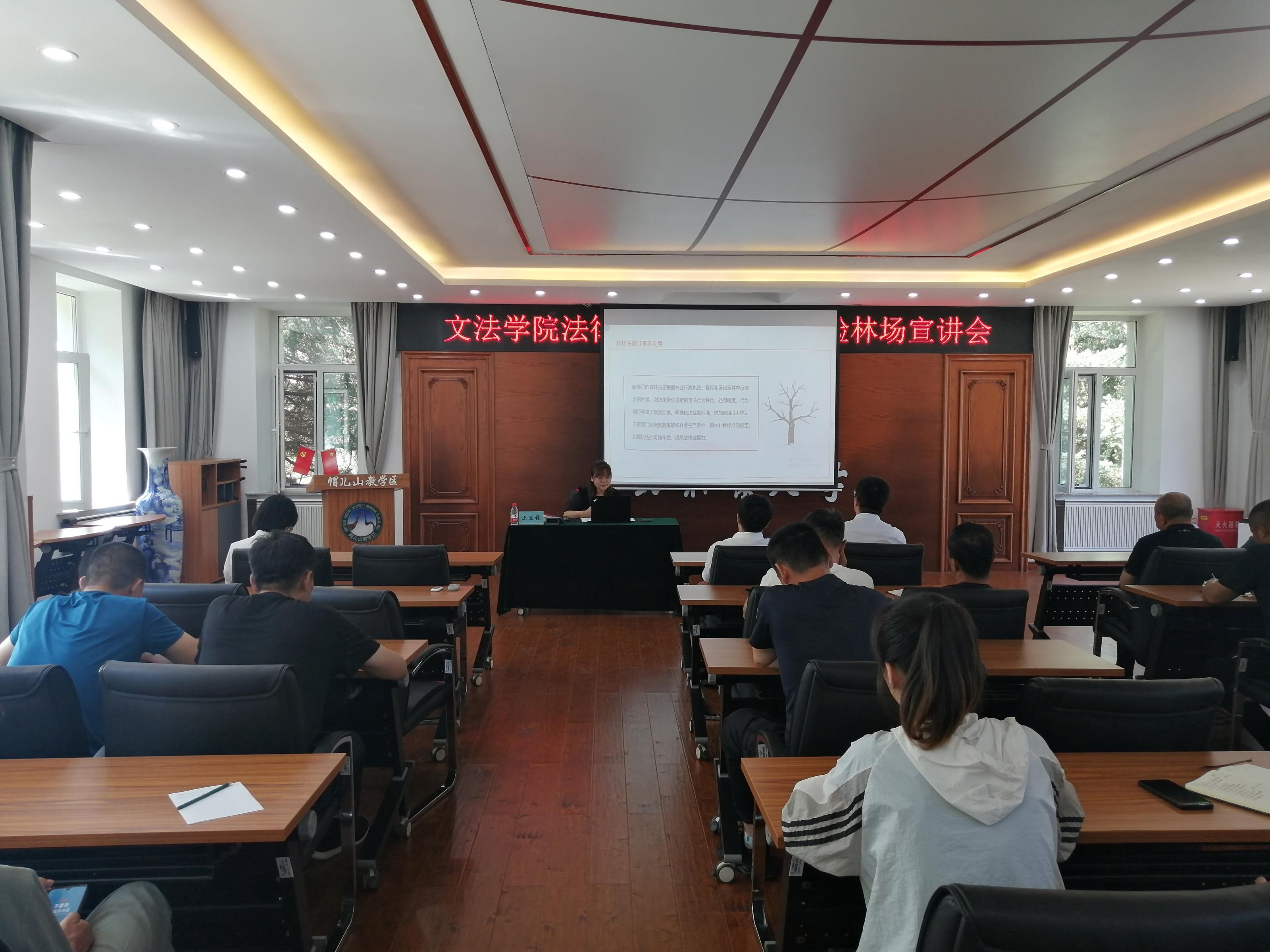 宣讲会上,文法学院党委书记侯彦杰表示,文法学院将继续加强与帽儿山实验林场的党建交流与沟通,发挥法学学科优势,派遣法律专家服务团,为林场职工提供具有实际意义的服务,推进文法学院与林场的共建发展。