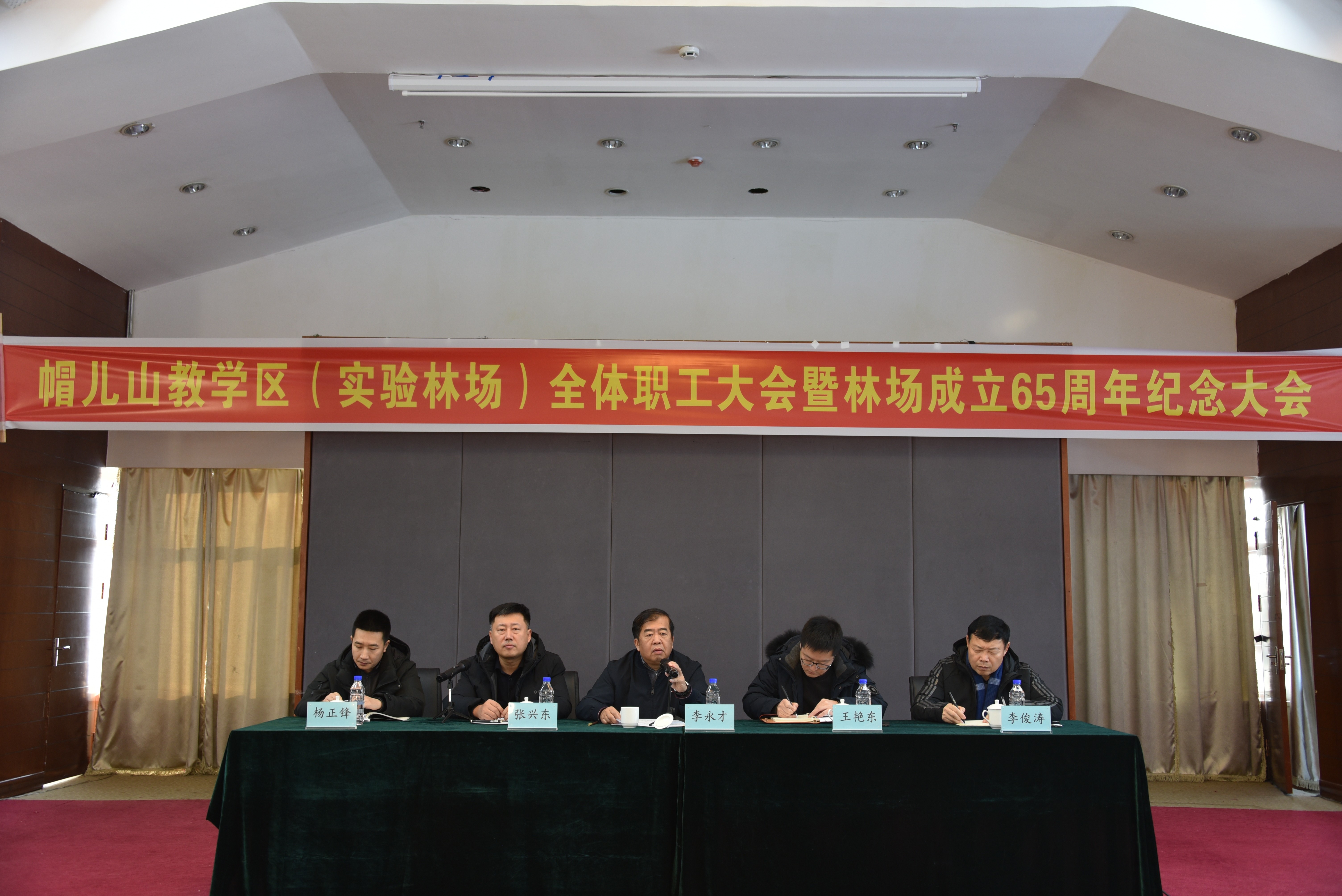 2023年12月28日,帽儿山教学区在霏读宾馆一楼会议室召开全体职工大会暨林场成立65周年纪念大会。教学区领导班子及全体教职工参会。
