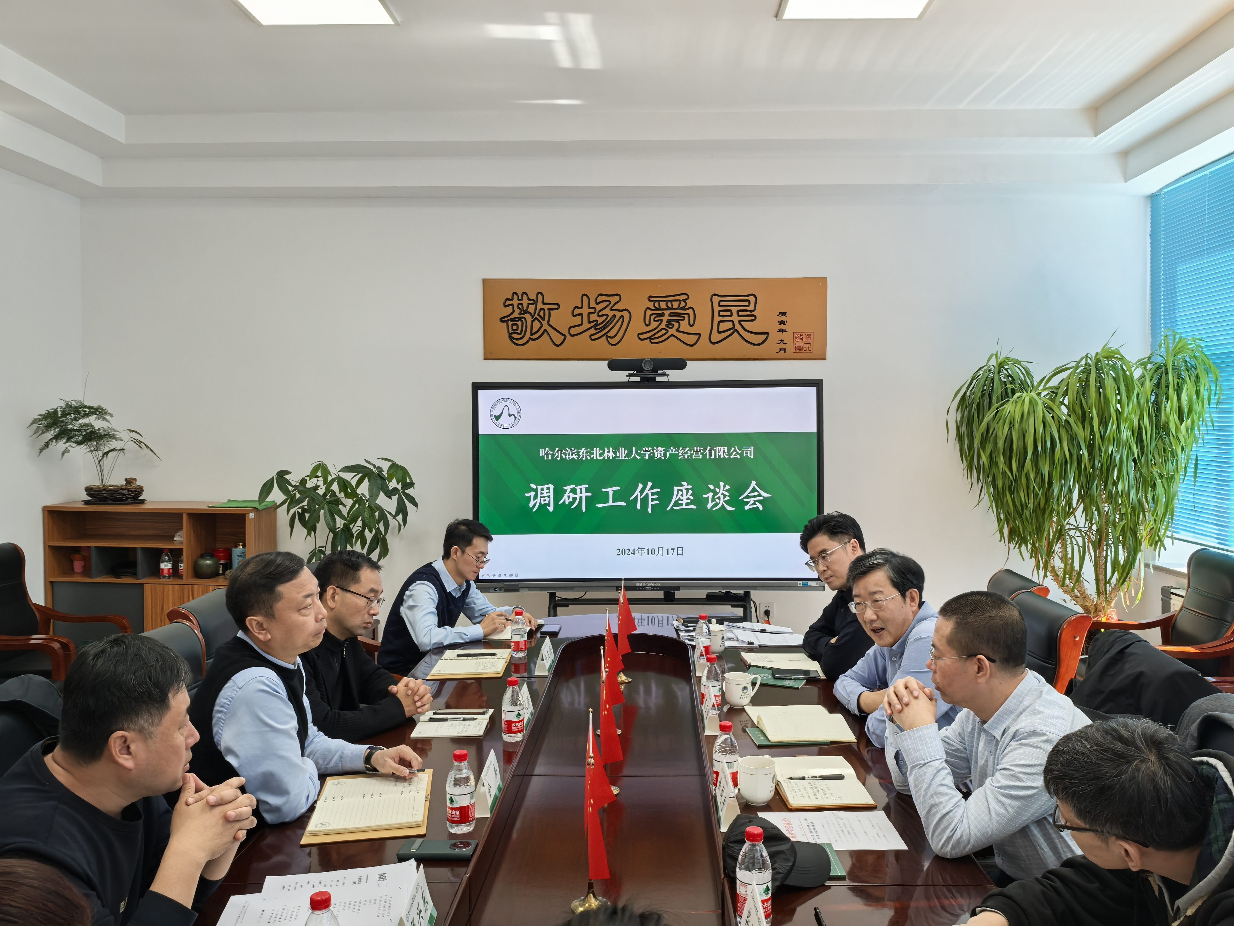 2024年10月17日,学校资产经营公司总经理陈立生、党总支书记曲闻宇、副总经理于超一行到帽儿山实验林场有限公司开展调研,并与我公司领导班子及有关管理人员召开了工作座谈会。