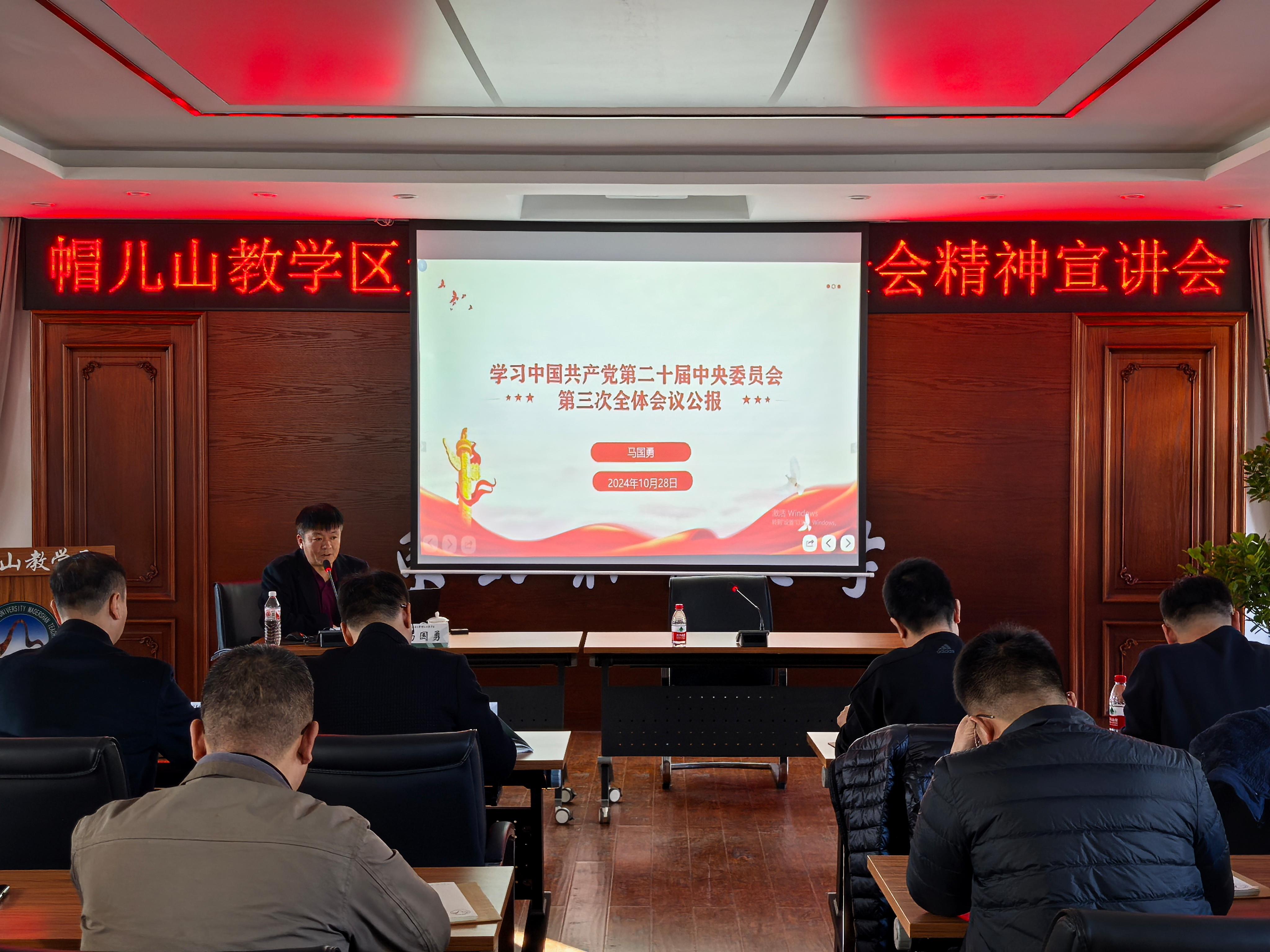 为深入学习贯彻党的二十届三中全会精神,引导广大党员和职工把思想和行动统一到全会精神上来、把智慧和力量凝聚到落实全会确定的目标任务上来,10月28日,帽儿山教学区召开学习贯彻党的二十届三中全会精神解读宣讲会。教学区邀请黑龙江省委宣讲团成员、东北林业大学经济管理学院院长马国勇教授作专题宣讲。帽儿山实验林场党总支书记苏永涛主持宣讲会,教学区领导班子及全体职工与会学习。