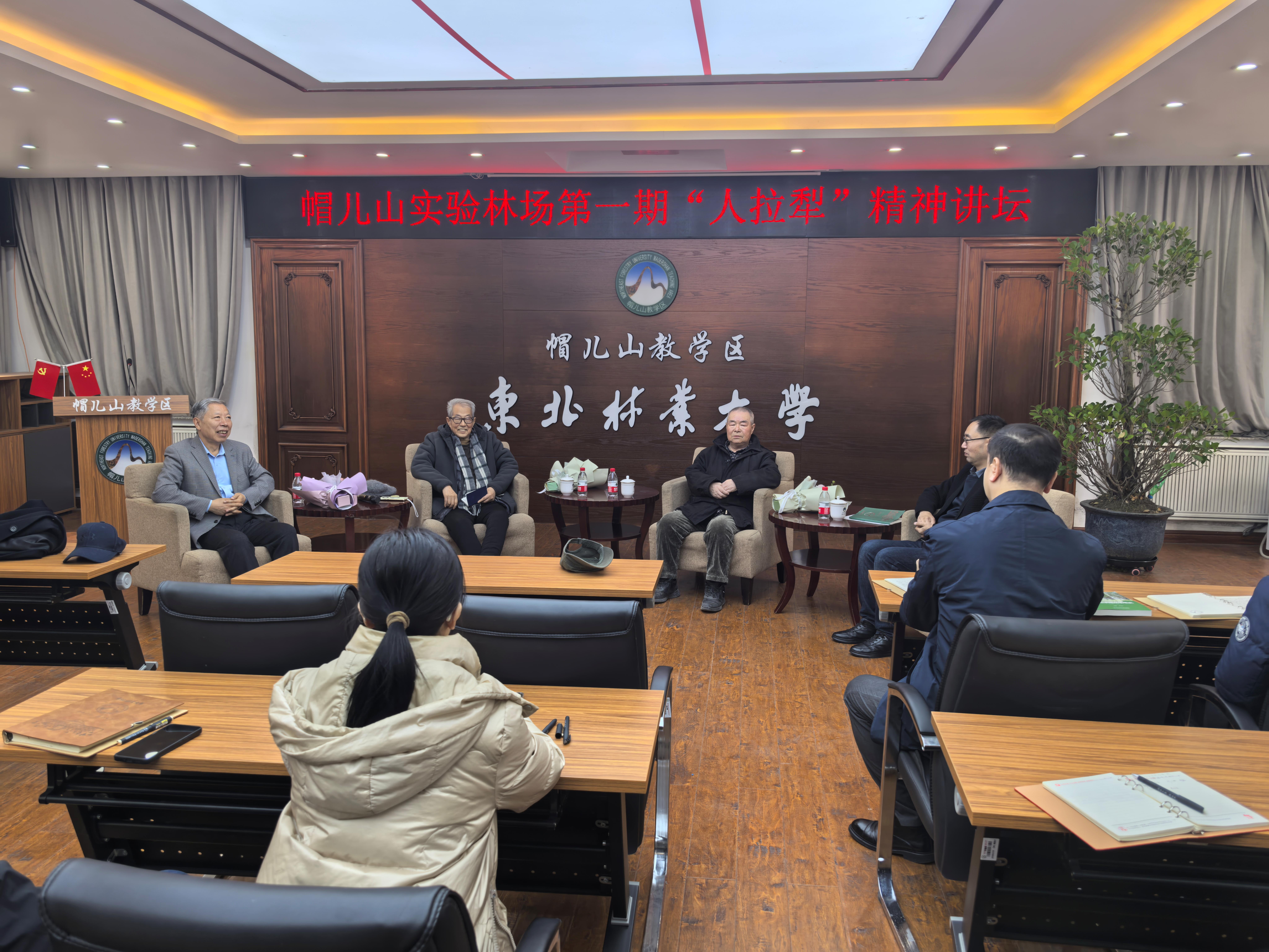 本次讲坛特邀1958年首批赴帽儿山建设者祝宁、林场场史撰写人杨滨章及原党委书记冯学三位嘉宾,围绕“人拉犁”精神的实质与新时代实践进行分享。