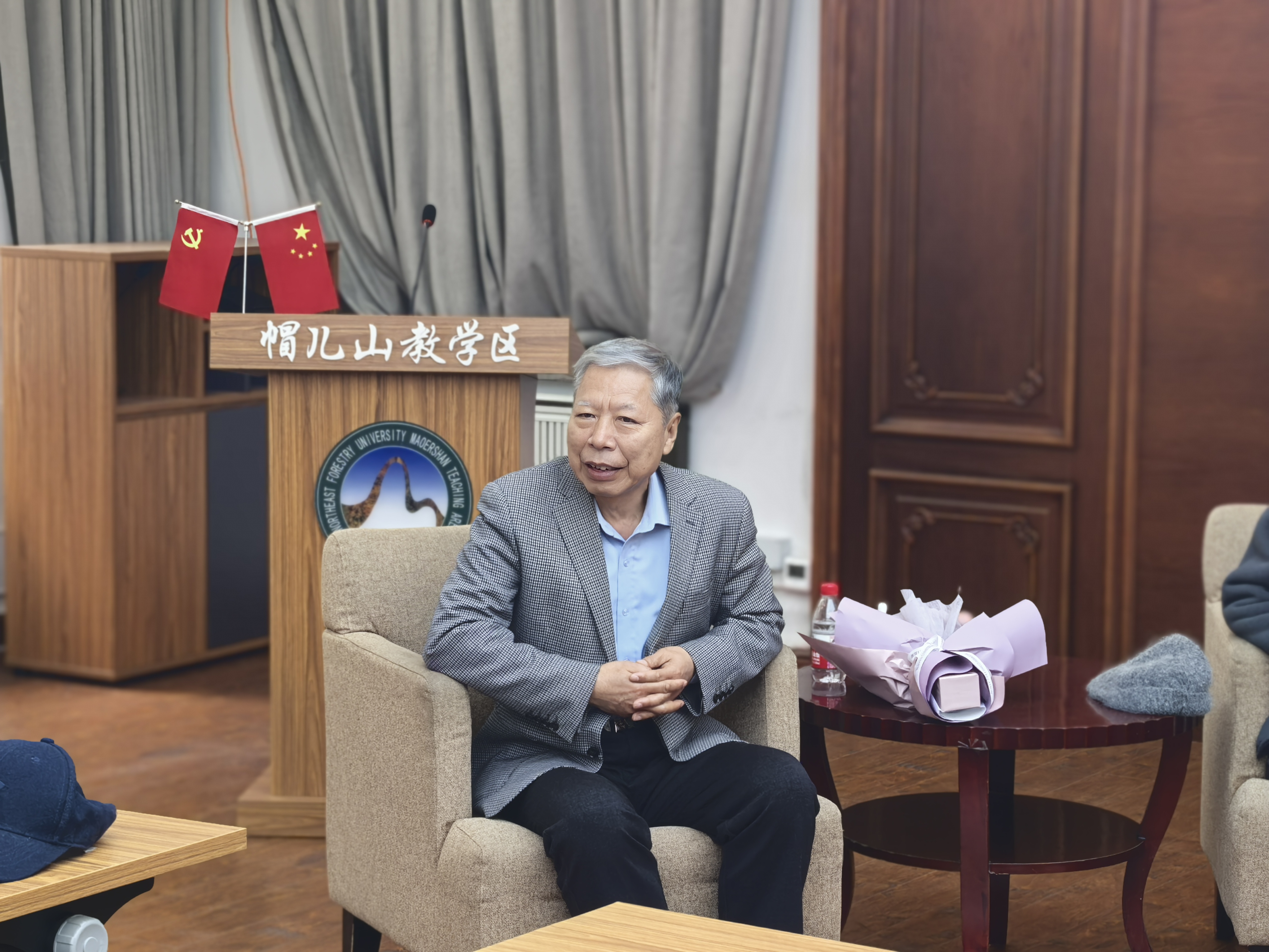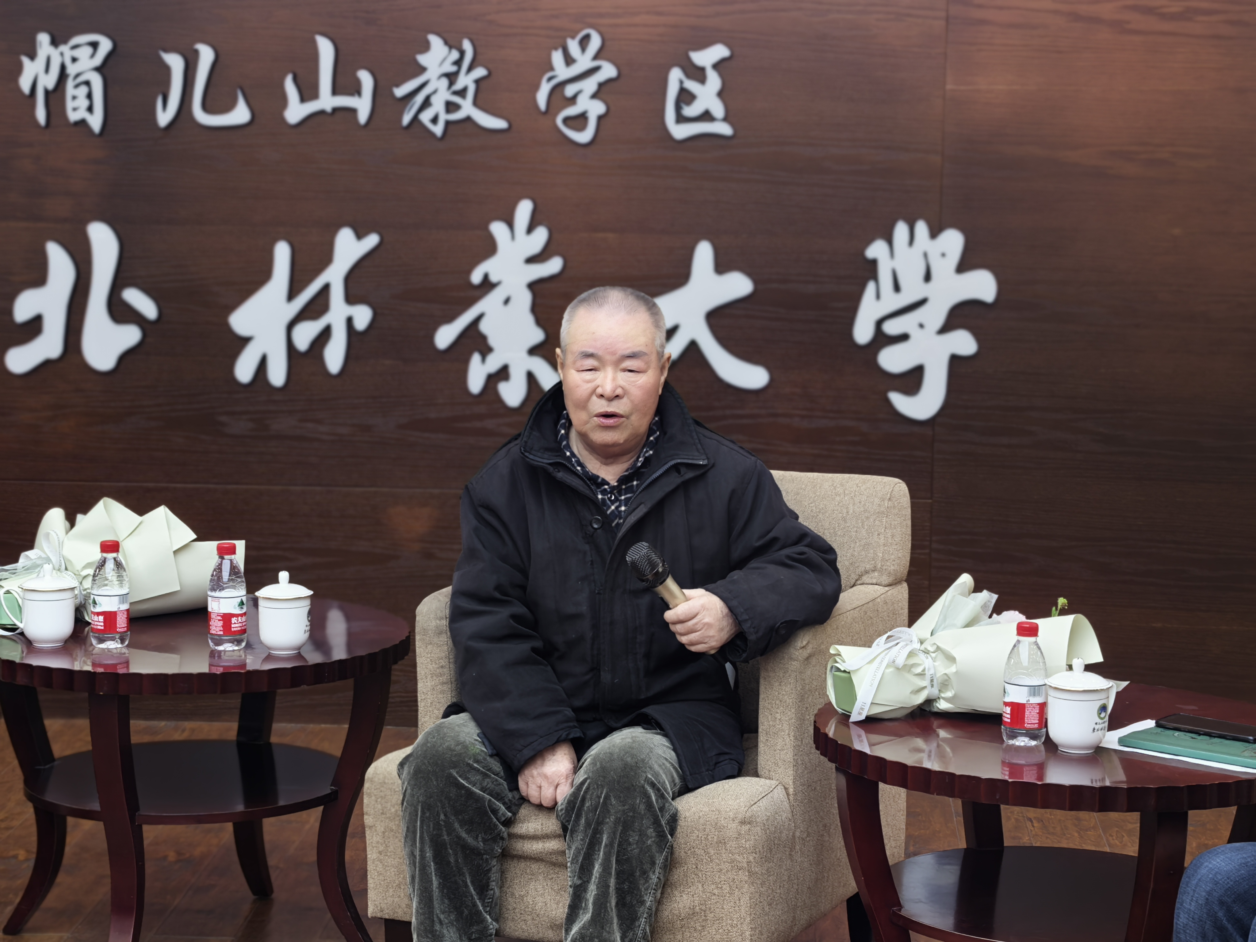 祝宁先生以亲身经历讲述了建场初期的艰辛与坚守,他说,他既熟悉又热爱帽儿山的山、林、人,为林场的发展成绩感到自豪和骄傲,他勉励年轻人要不忘初心、育林育人、高瞻远瞩、继往开来,要扎根林场、心系林场,将“人拉犁”精神融入血脉,把论文写在大地上,为林业事业奋斗终身,要目标明确并坚持到底。