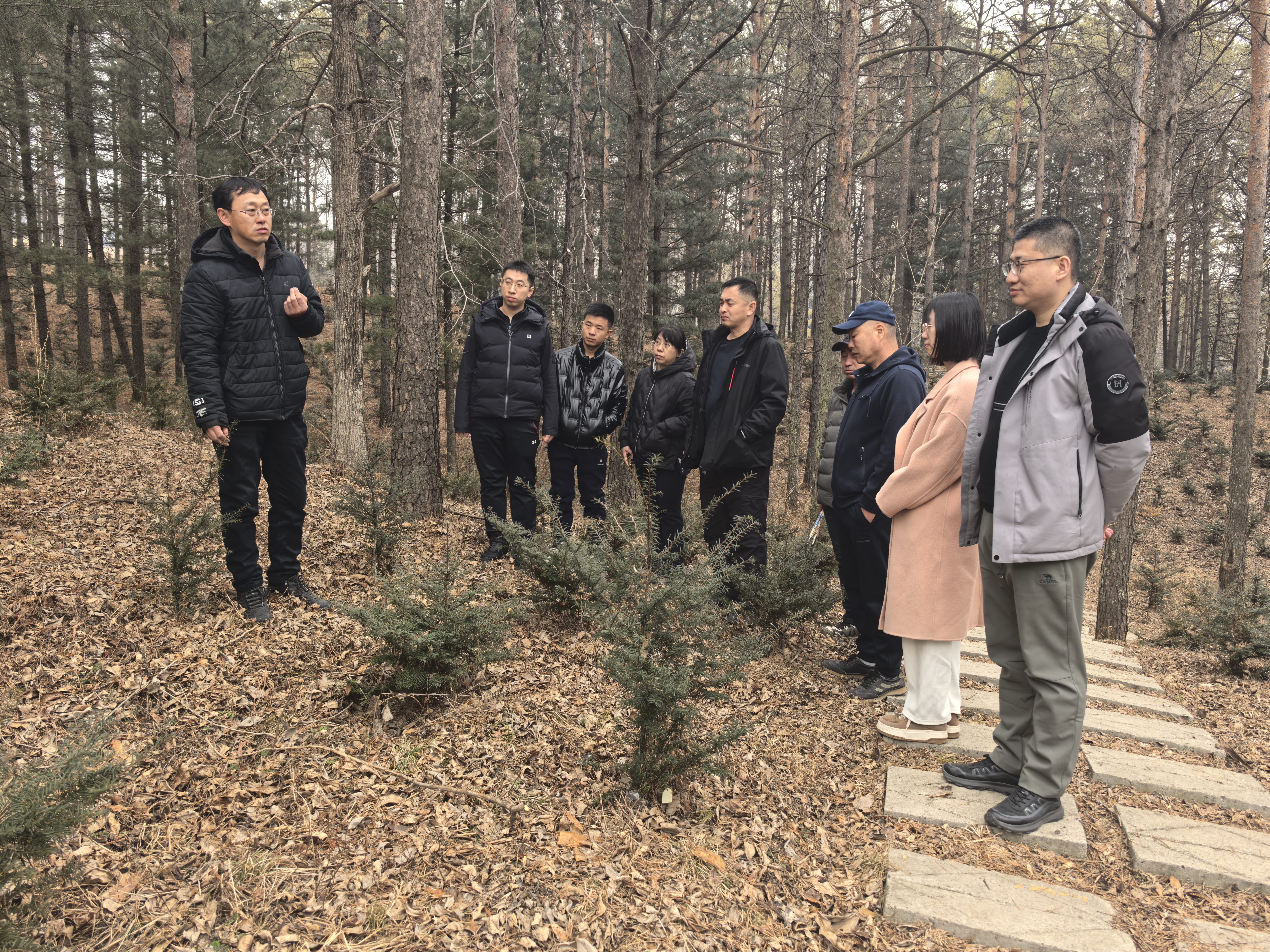 为了将理论与实践相结合,教学区创新地将课堂、教室移至大自然、大森林中。在实地讲解环节,教学区张红光老师以一小棵红豆杉为切入点,生动讲述了帽儿山丰富的森林资源和植物多样性。他提到,今年是“绿水青山就是金山银山”理念提出20周年,生态文明建设是关系中华民族永续发展的千年大计,需要每个人从人与自然和谐共生的高度出发,共同谋划发展。通过此次实地教学,大家深刻感受到了森林的壮丽与脆弱,更加坚定了保护森林的决心。
