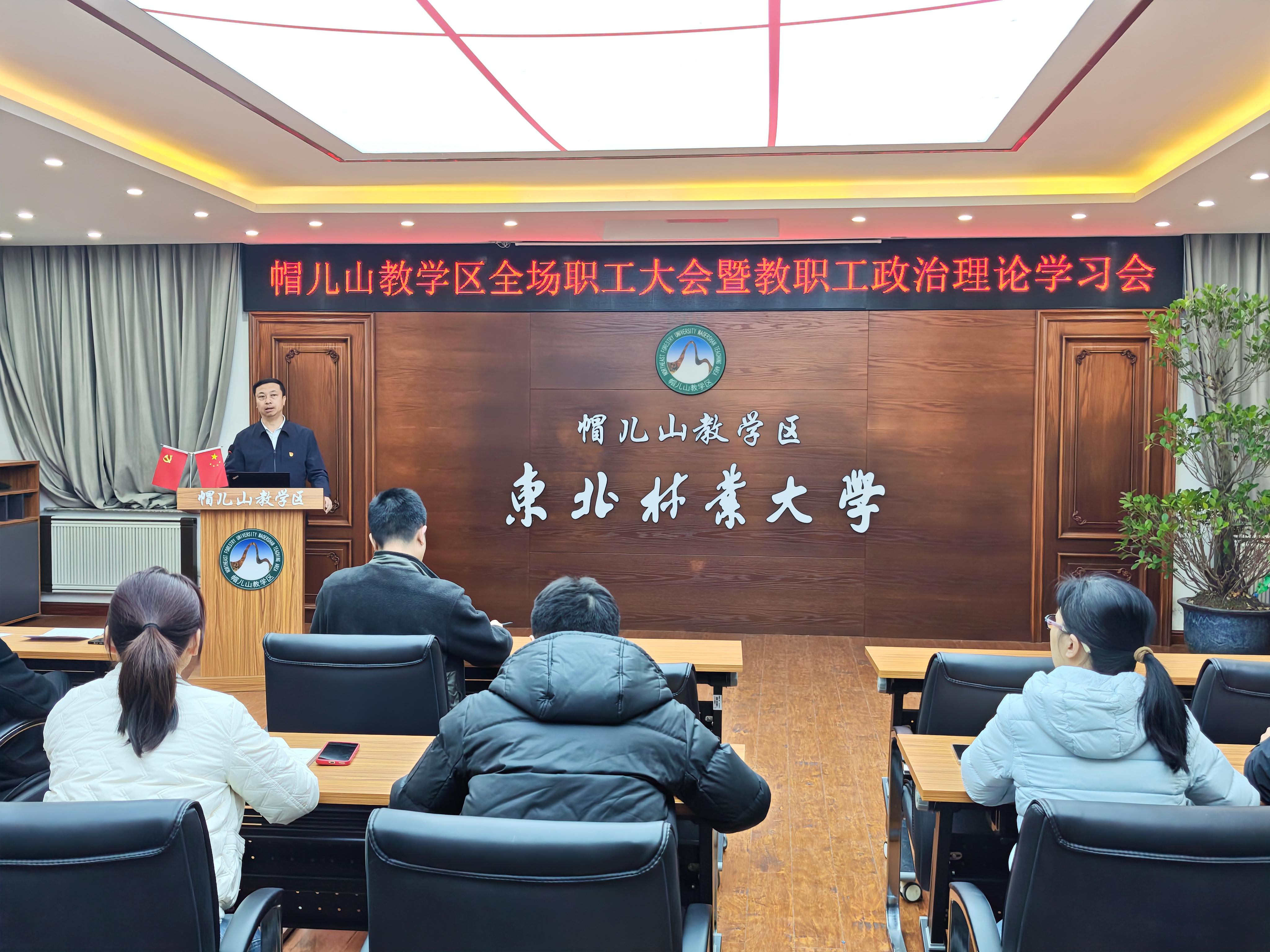 2025年4月24日下午,帽儿山教学区召开全场职工大会暨教职工政治理论学习会,会议由副场长杨正锋主持,会议聚焦党建引领、服务优化、保密安全等重点工作,凝聚共识、明确方向。