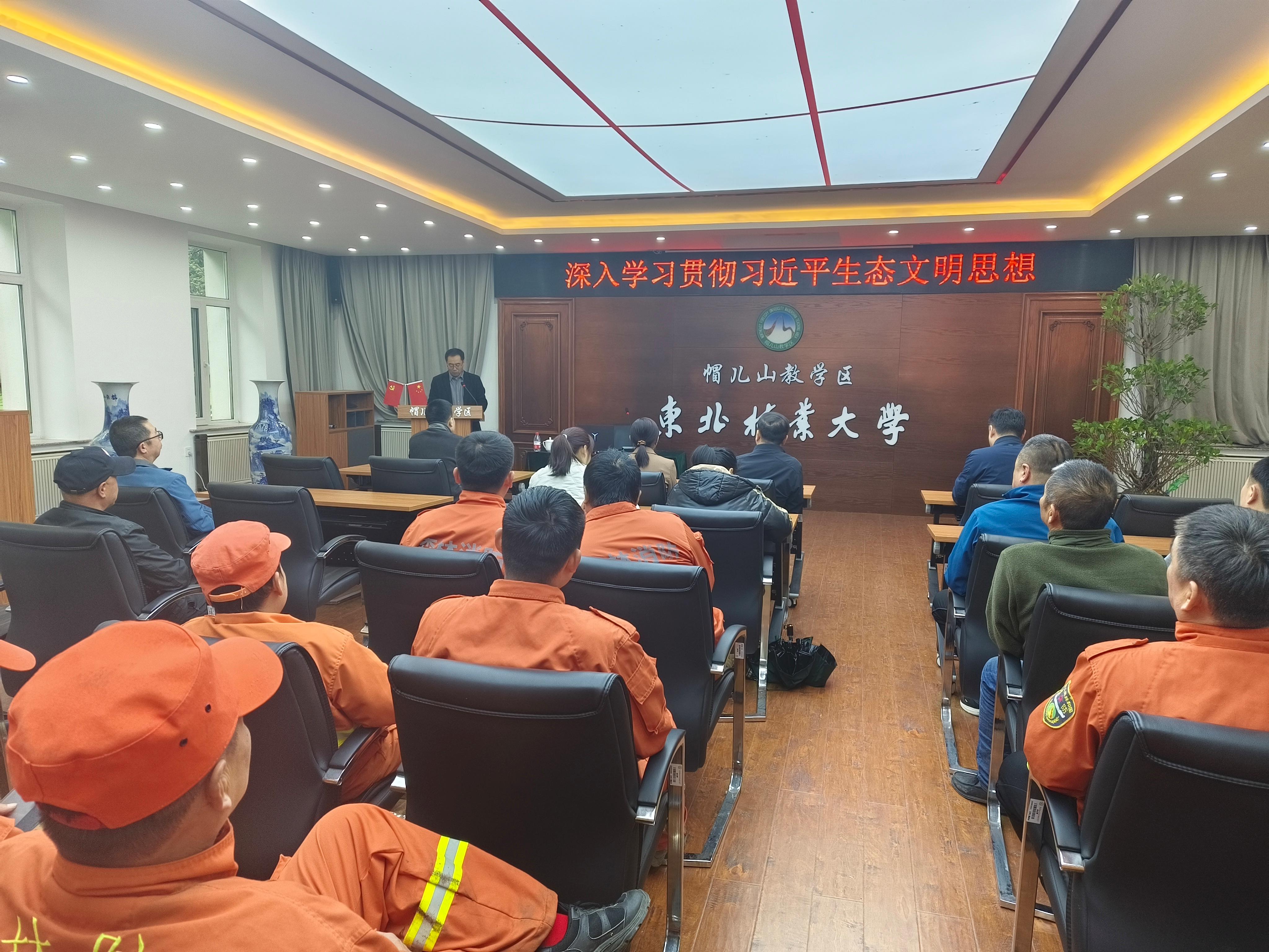 为深入学习领会习近平生态文明思想,引导全场职工做好生态文明“践行者”,5月9日,帽儿山教学区在林政资源管理科会议室举办了习近平生态文明思想专题讲座。讲座由林场党总支书记苏永涛主持,林场全体职工参加本次讲座。