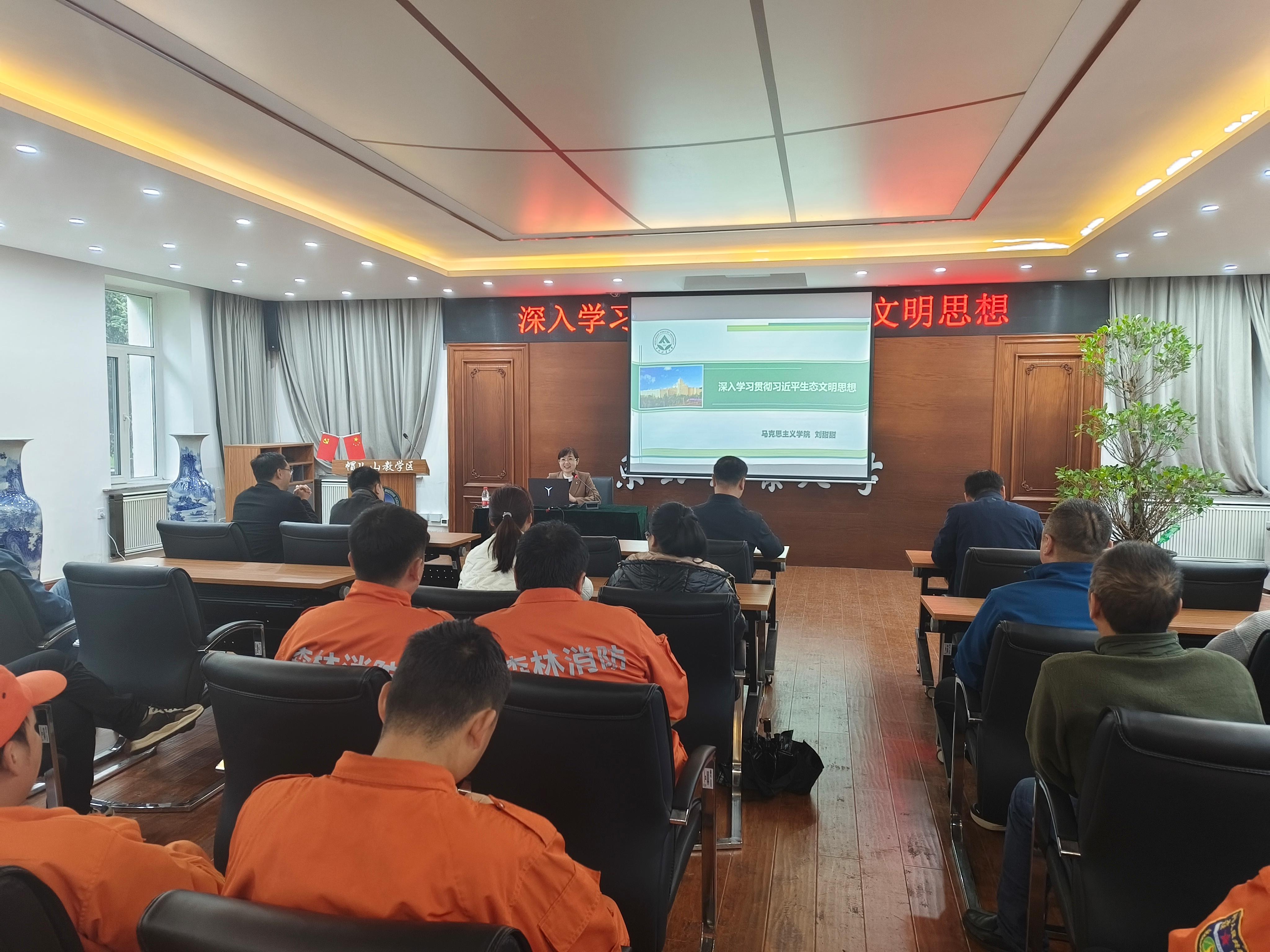 讲座邀请到东北林业大学马克思主义学院刘甜甜副教授,她以《深入学习贯彻习近平生态文明思想》为主题,为全场职工带来了一场精彩纷呈的专题讲座。刘甜甜老师从“坚持党对生态文明建设的全面领导”、“坚持生态兴则文明兴”、“坚持人与自然和谐共生”等十个方面,结合实际案例,系统全面地阐述了习近平生态文明思想的重要内容。她指出,这十个坚持构成了习近平生态文明思想的科学体系,是新时代推进生态文明建设必须长期坚持的基本原则和行动指南。讲座将理论与实际紧密结合,用生动的案例和详实的数据,使全场职工对习近平生态文明思想有了更加深入的理解和认识,进一步明确了自身在生态文明建设中的责任和使命,为帽儿山教学区今后更好地开展生态保护和建设工作指明了方向。