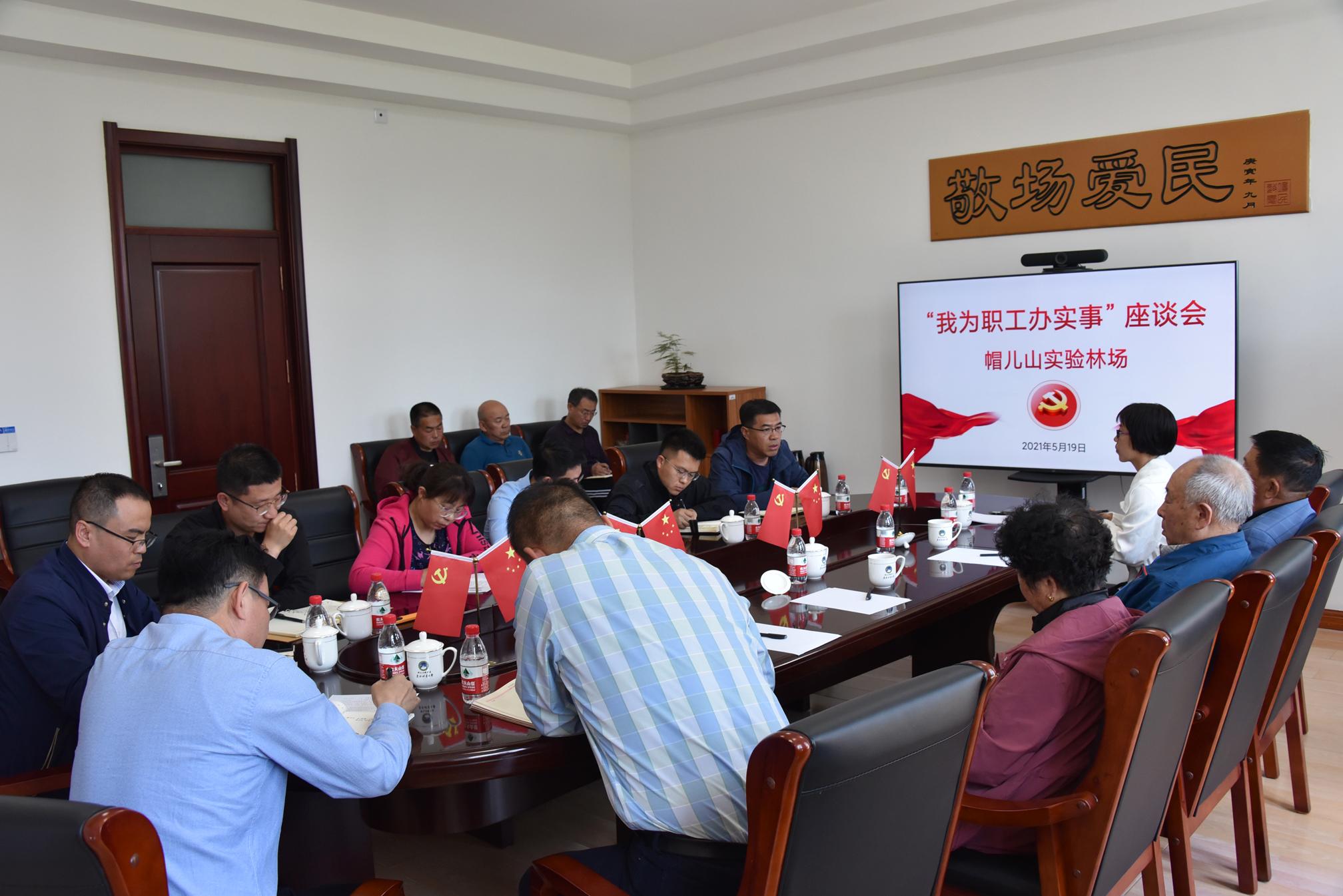 为推动党史学习教育走深、走实,切实解决职工“急难愁盼”问题,深入了解职工对林场改革发展的意见和建议,为职工办实事、办好事,为林场谋发展、开新局,2021年5月19日,林场党总支召开了由退休职工和在职职工、党员代表参加的各层面“我为职工办实事”征求意见座谈会。