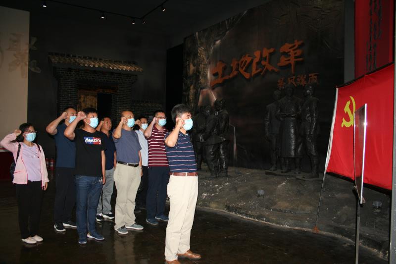 下午,党员们来到了活动的另一个地点——暴风骤雨纪念馆。暴风骤雨纪念馆位于尚志市元宝镇元宝村——中国土改文化第一村。暴风骤雨纪念馆真实地再现了元茂屯、珠河县、东北乃至全国的土改运动中,广大农民在党的领导下,与封建地主阶级进行斗争的光辉历史;并展示了周立波的生平资料与部分作品。讲解员精彩的讲解使党员们感触很深,当讲解到元宝村由“光腚村”到“亿元村”的转变时,全体党员同志们都深受鼓舞,深深感受到,只有中国共产党才能救百姓于水火;只有中国共产党才能带领人民走上幸福的康庄大道;只有中国共产党才能救中国。最后,全体党员重温了入党誓词,在铮铮誓言中见证了初心和使命。