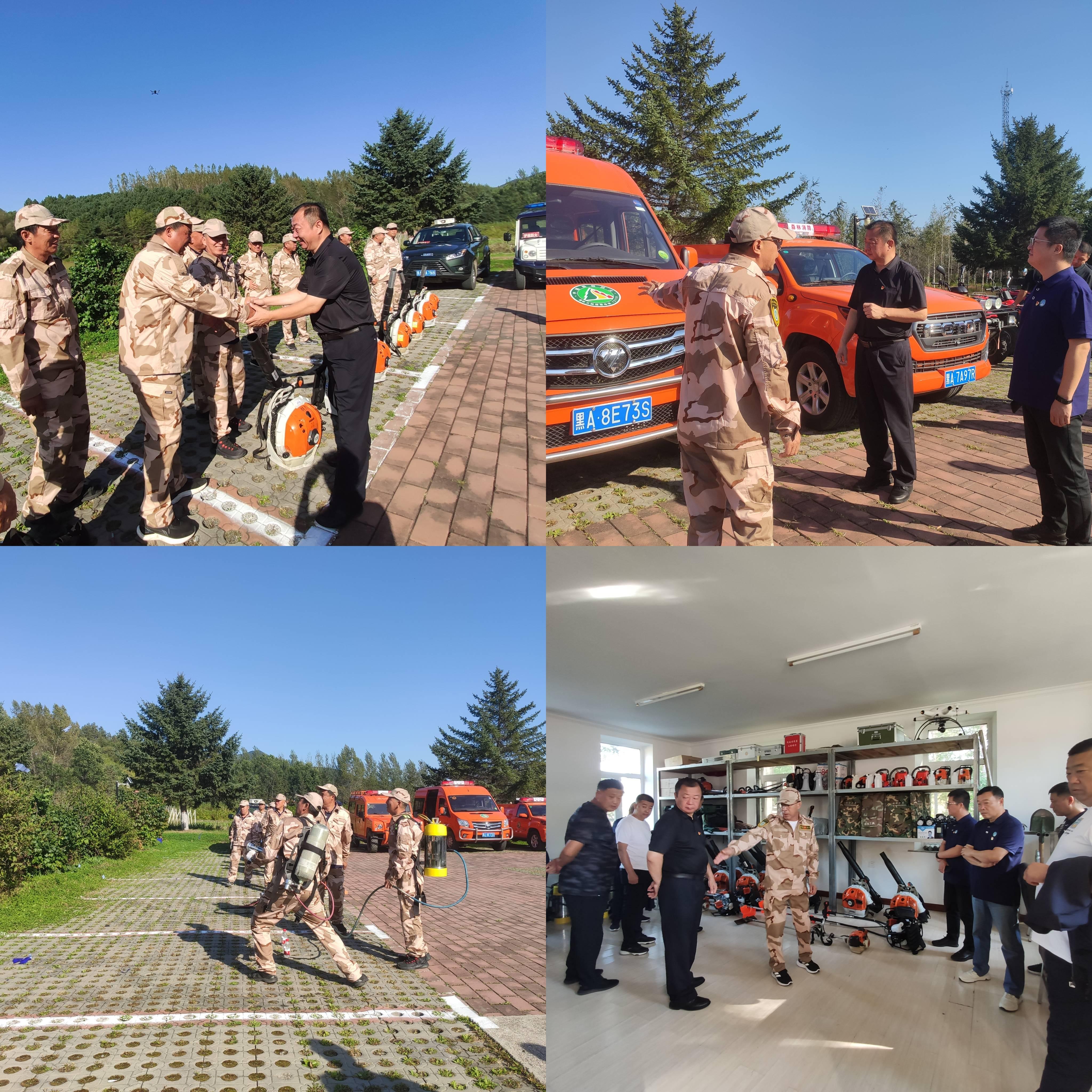 李长松处长一行首先观摩了林场扑火队伍防火演练和机具使用情况,并实地查看了林场的扑火装备、物资储备和内业建设等情况。随后,组织召开了2023年秋季森林防火工作会议,会议由林场副场长张兴东主持。会上,林场党总支书记王艳东代表全场干部职工对保卫处一行到林场检查指导森林防火工作及开展合作共建活动表示热烈欢迎,对保卫处给予林场森林防火工作的全方位指导和大力支持表示衷心感谢,林场一定全力落实各项工作部署,完成秋防任务;林政资源管理科科长丁驿汇报了林场2023年秋季森林防火工作准备情况;李长松处长对林场的森防工作给予了高度肯定,同时他指出,一是要加快推进林区监控系统网格化管理,增强森林防火工作科技含量,提升森林防火工作的质效;二是要将防火机具前置到一线,做好属地联防联动,配合无人机的使用,发现火情及时处置,做到“打早、打小、打了”。最后,林场党总支书记王艳东和保卫处党支部书记李长松代表双方党组织签订了合作共建协议。